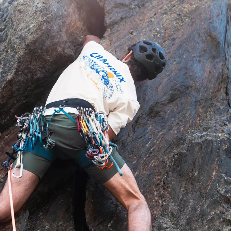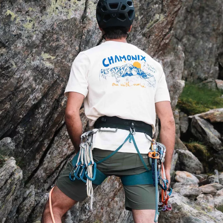 Le teeshirt du Refuge de Chamonix, une coupe loose et un coton plus épais mais toujours recyclé. Et une magnifique impression sérigraphiée dans le dos.