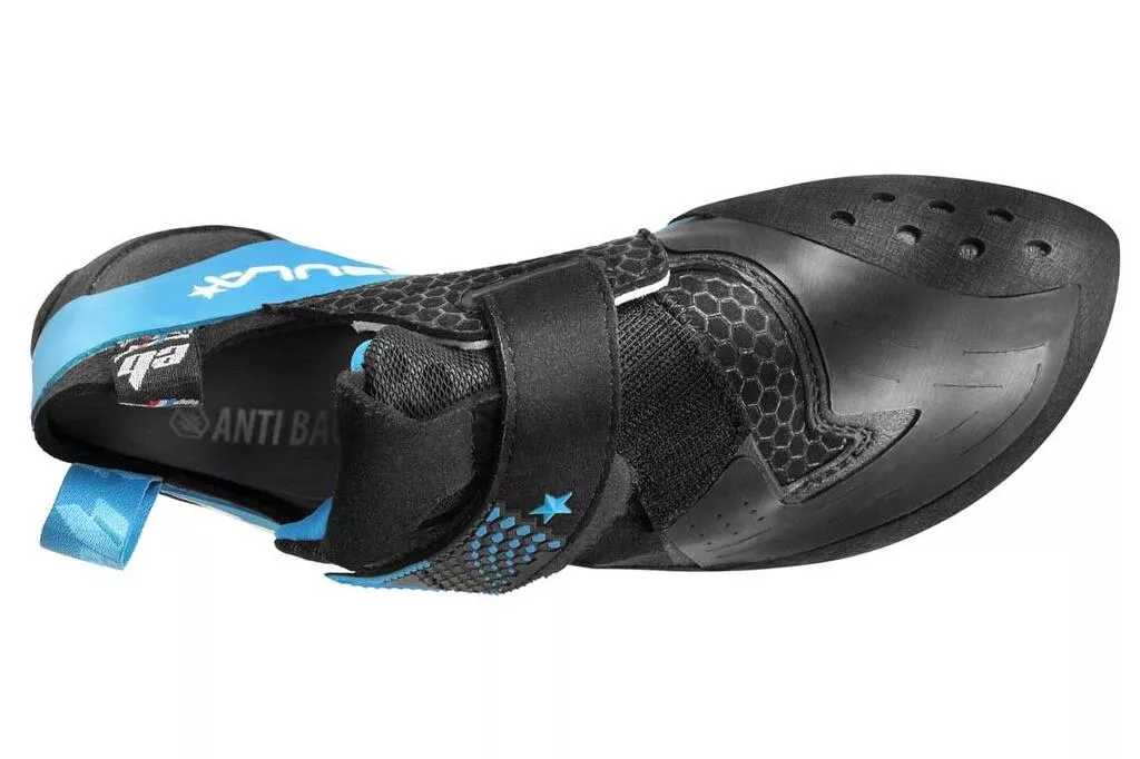 Sans inter semelle, le Nebula est d’une souplesse radicale comparable à une ballerine de danse. Il exigera du grimpeur de la technique et de la force sur les pieds. Dés lors que l’on a des pieds puissants, la souplesse associée à une hyper asymétrie, à une griffe prononcée et à une semelle adhérente (DS Max 4mm), font du Nébula un chausson d’escalade taillé pour le bloc agressif, nerveux et très performant.