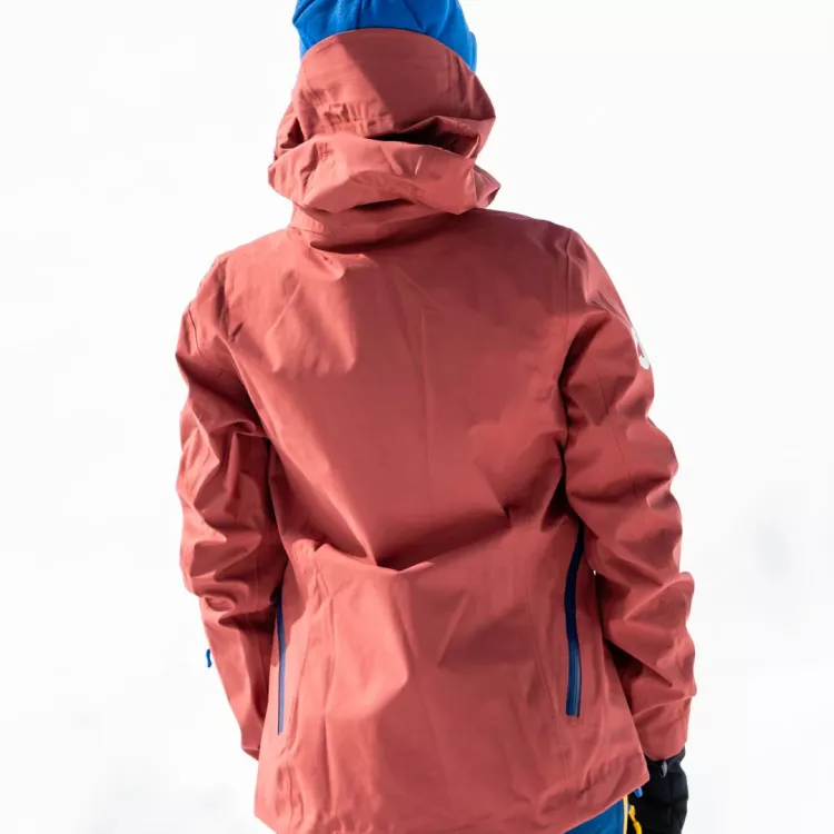 Enfin la veste de montagne pour femme recyclée et fabriquée en Europe. Une veste technique imperméable, coupe-vent et respirante.